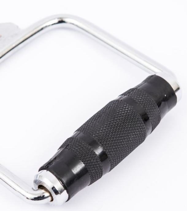 Fitness jednostruka ručka, dizajnirana za vježbanje na donjoj ili gornjoj remenici. Može se spojiti na bilo koju fitness spravu koja ima mogućnost povlačenja utega. Pomoću ručke vježbamo mišiće gornjeg dijela tijela, fokusirajući se na ruke, ramena i prsa. Čelična drška je malo zadebljana radi boljeg držanja. Rotirajuća ručka omogućuje brži i učinkovitiji trening onih mišićnih dijelova koje klasična ručka ne može.Materijal: čelikPromjer držača s gumom: 38 mm