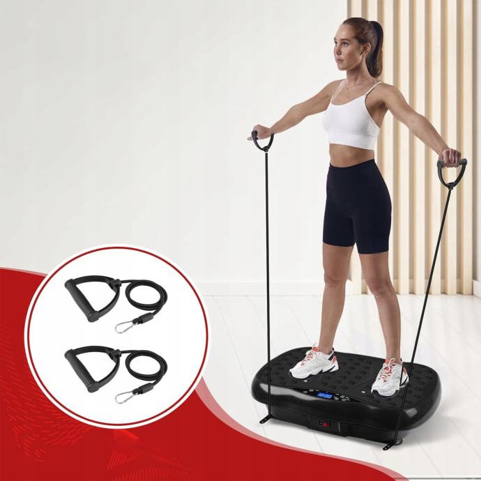 Nudimo modernu vibracijsku platformu s otpornim kabelima koja će vam omogućiti učinkovito vježbanje u udobnosti vašeg doma. Idealan je pribor kako za fizički aktivne osobe, tako i za one koji žele započeti svoju avanturu vježbanja. Kompaktan, čvrsto izrađen i jednostavan za korištenje, savršeno je rješenje za svakoga tko želi poboljšati svoju kondiciju i zdravlje.