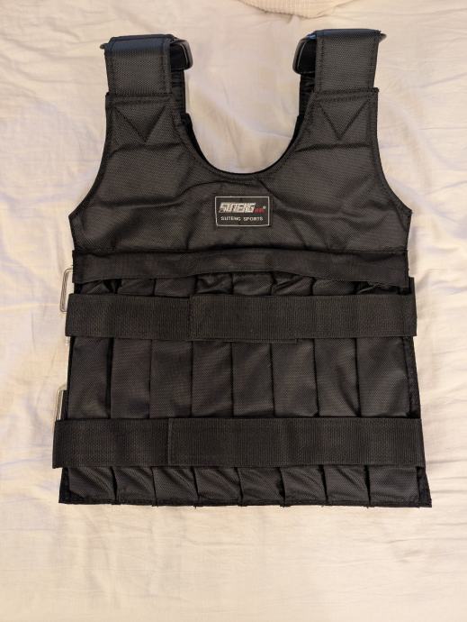 Prodajem prsluk za trening. Prsluk nije koristen. U prsluk se mogu umetnuti utezi ili pijesak da bi se dobilo dodatno opterećenje.