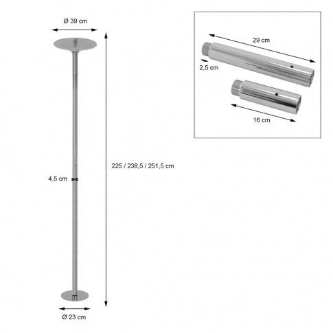 Prodajem šipku za ples (pole dance) marke M-Pole, krom izvedbe. Šipka se montira između poda i stropa bez bušenja, s podešavanjem visine pomoću tlačnog mehanizma. Dolazi s baznom pločom i gornjim nosačem, a rastavlja se na više dijelova radi lakšeg transporta i pohrane.