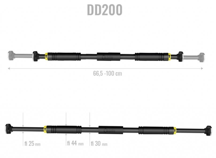 Snažna pull up šipka koja se postavlja na okvir vrata. Čvrsti silikonski jastučići osiguravaju stabilan položaj šipke, a osigurač sprječava okretanje! Ručke su prekrivene posebnim materijalom koji upija znoj i sprječava klizanje ruke. Osim toga, proizvod je otporan na koroziju zahvaljujući duplom sloju prašne farbe.Dopušteno opterećenje: 220 kgMaterijal: čelik, ABS, EVAZa širinu vrata: od 66,5 do 100 cmPromjer unutarnje cijevi: 25 mmVanjski promjer cijevi: 30 mmPromjer ručke: 44 mm