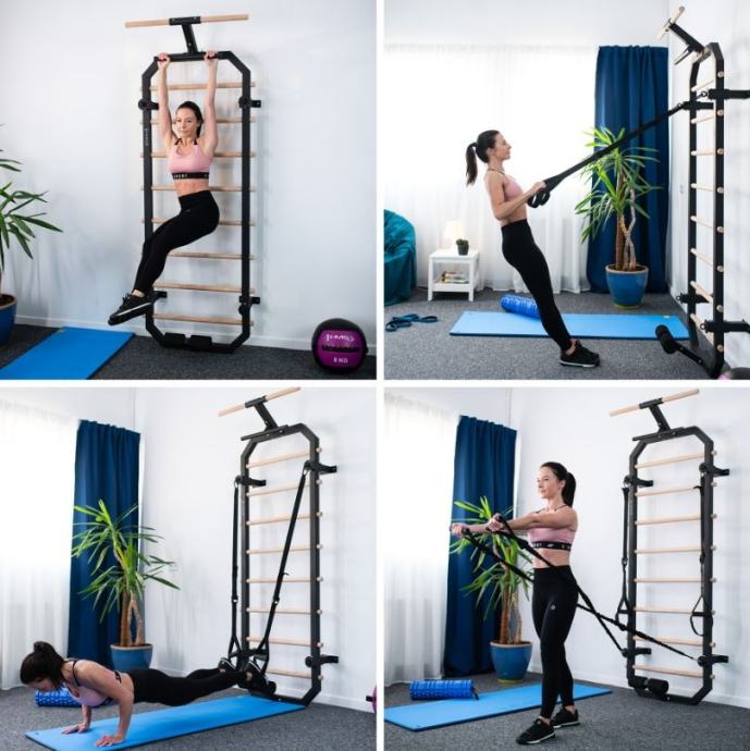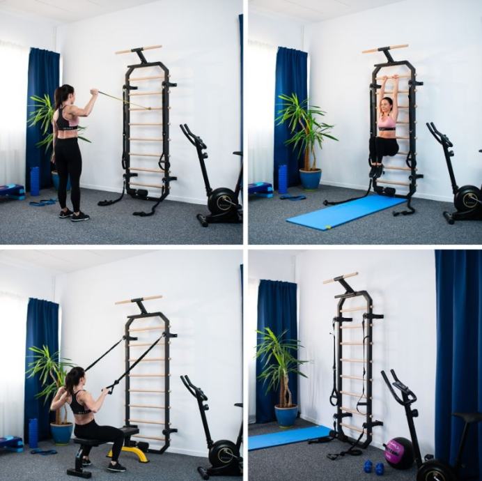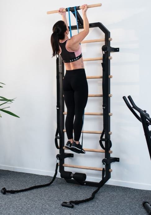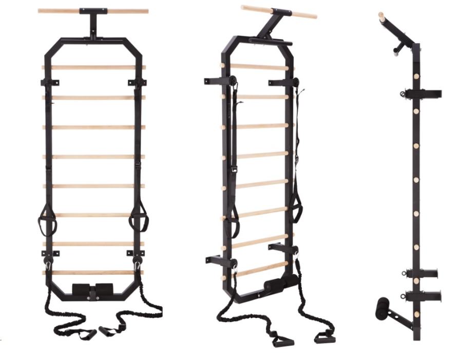 Potpuno nove ljestve za raznovrstan trening, idealno su rješenje za one koji žele kvalitetno vježbati kod kuće. Proizvod je izrađen od visokokvalitetnog čelika i ima 8 stepenica od bukovog drveta. Visokokvalitetne ljestve su visoke 223 cm i široke 80 cm. Možete trenirati cijelo tijelo s priloženim trakama za vježbanje, elastikama i šipkom za zgibove.Estetsko rješenje i funkcionalnost za svaki domMaterijal: Q235 + drvo bukveUkupna visina: 223 cmVisina okvira: 205 cmŠirina okvira: 64 cmDuljina drške: 80 cmRazmak između nosača: 19,5 cmUdaljenost okvira od zida: 14,2 cmDuljina elastike: 120 - 400 cmDuljina traka: 105 - 145 cmOslonac za noge: 34 cmŠirina donje letve: 45,5 cmMaksimalna težina: 300 kg