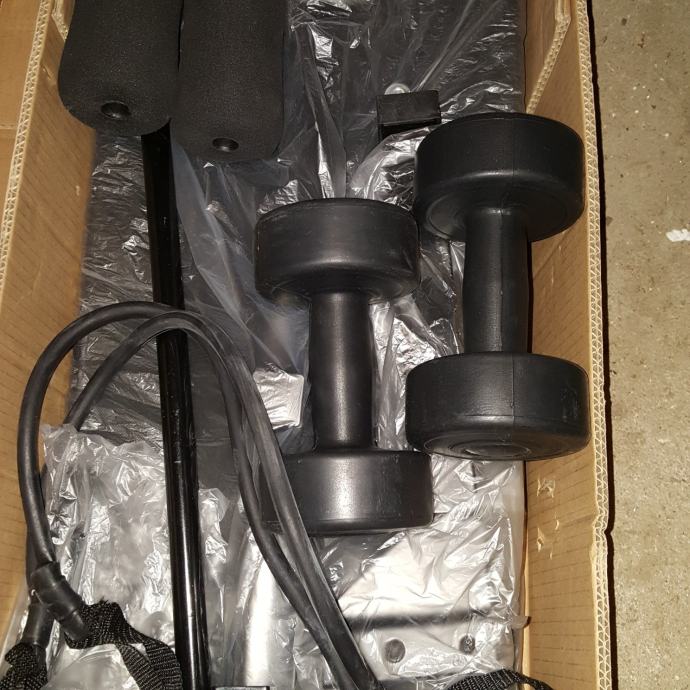 Posjeduje užad koja pomaže u istezanju mišića leđa i ruku i dva utega od po 1,5 kg