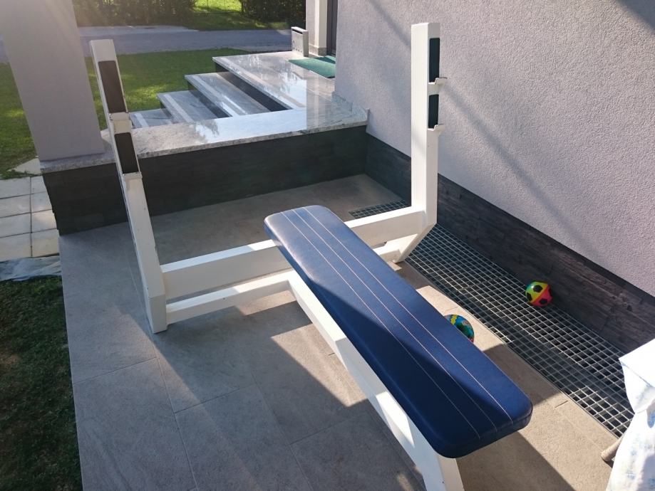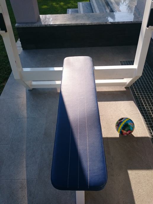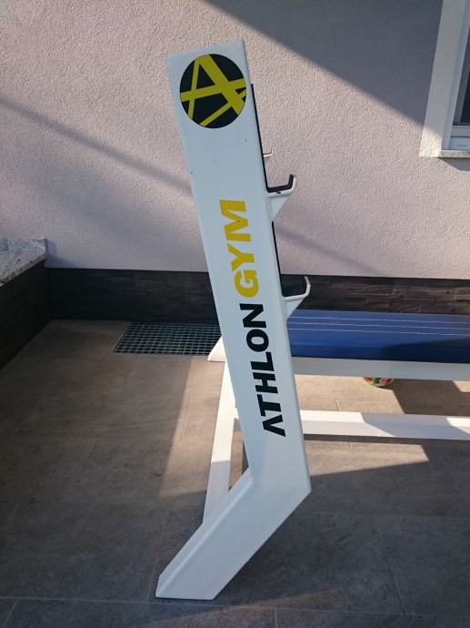 Olimpijska klupa Athlon Gym u vrhunskom stanju, relativno malo korištena. Tragovi korištenja vidiljivi na dijelovima (malo oguljena boja), ali tapicirung kao prvoga dana. Vrhunski proizvod, praktički nepoderivo.