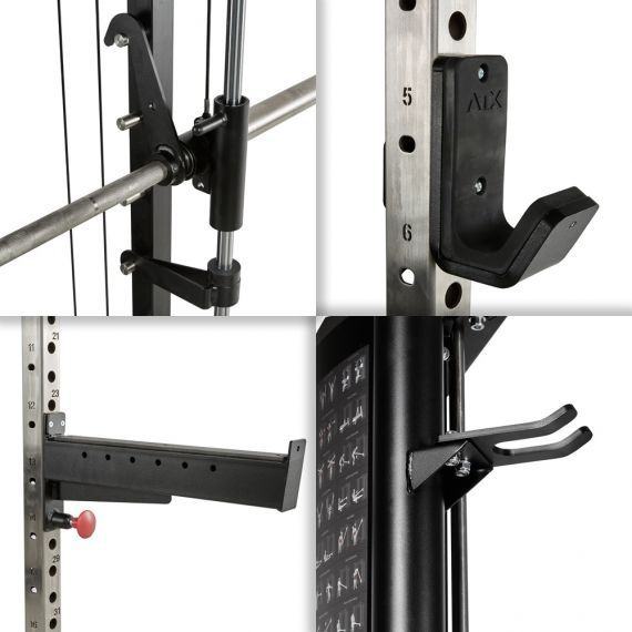 ATX MULTIGYM je visokokvalitetni višenamjenski fitness uređaj koji inspirira i postavlja nove standarde s izvrsnim karakteristikama izvedbe i vrhunskom izradom. Sprava nudi širok raspon mogućnosti treninga, a remenicu možete koristiti neovisno jedan o drugom. U cijenu je uključen sav pribor sa slike osim nastavka za otisak stopala koji je također dostupan.