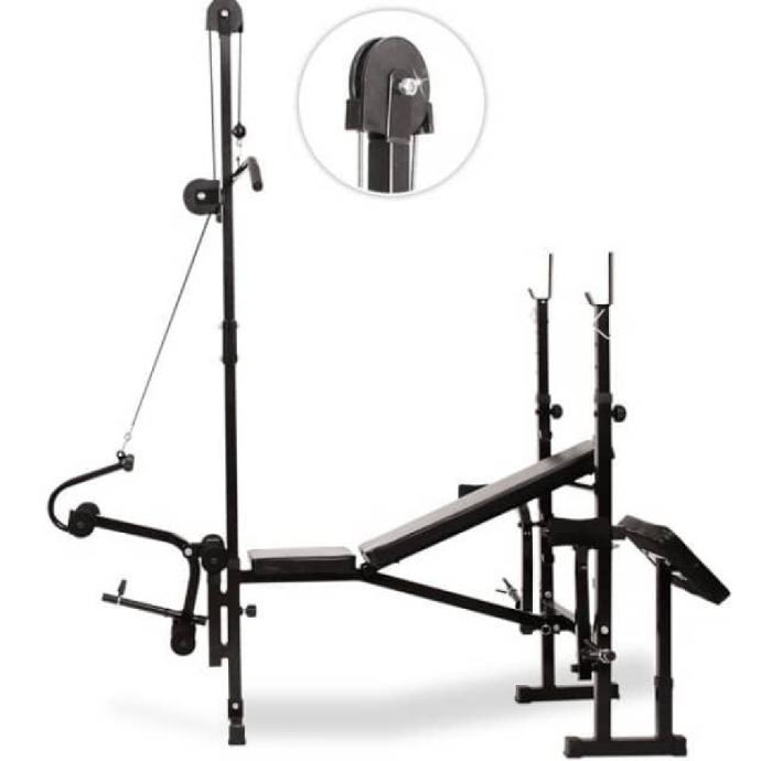Početnici i profesionalci mogu vježbati različite učinkovite vježbe vježbanja s višenamjenskom stolom. Čvrsta četverokutna metalna konstrukcija idealna je za svestran trening mišića. Klupa za težinu opremljena je mnogim dodatcima kao što su Latissimusturm, Butterfly i Beincurler te nudi savršenu osnovu za raznovrsnu vježbu. Naslon za leđa se može podesiti nekoliko puta. Klupa za bildanje brzo se montira i može se presavijati kako bi se uštedio prostor.