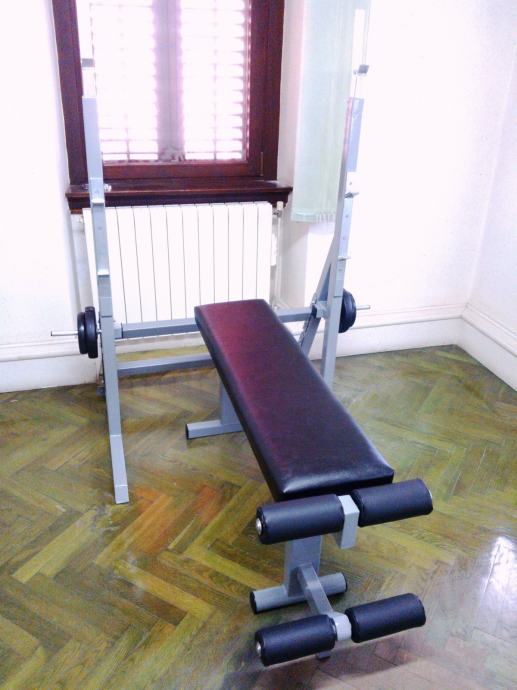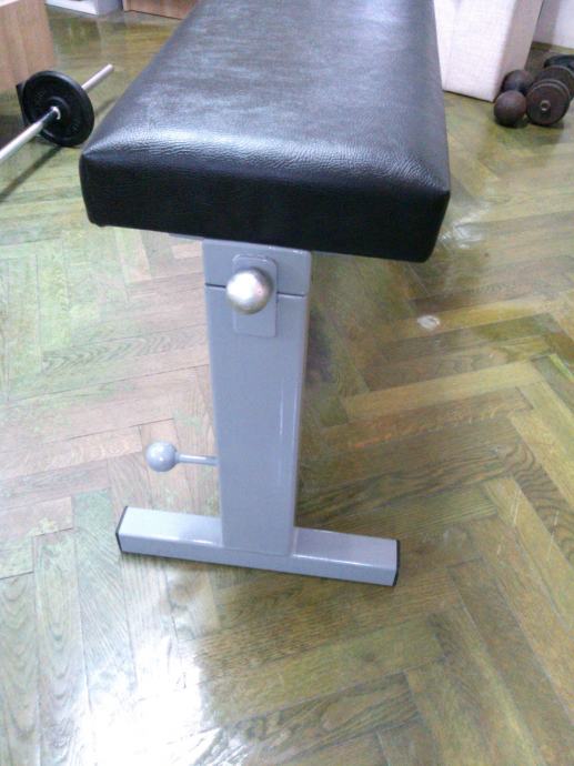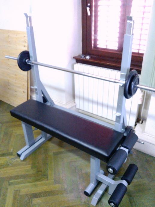Tapecirung je izveden od otpornog mornaričkog skaja i dvije vrste spužvi (tvrda i meka) i ima dimenzije 30 x 115 cm. Možete kupiti posebno klupu za bench / trbušnjake po cijeni od 900 kn ili stalak za šipku i utege za 600 kn.