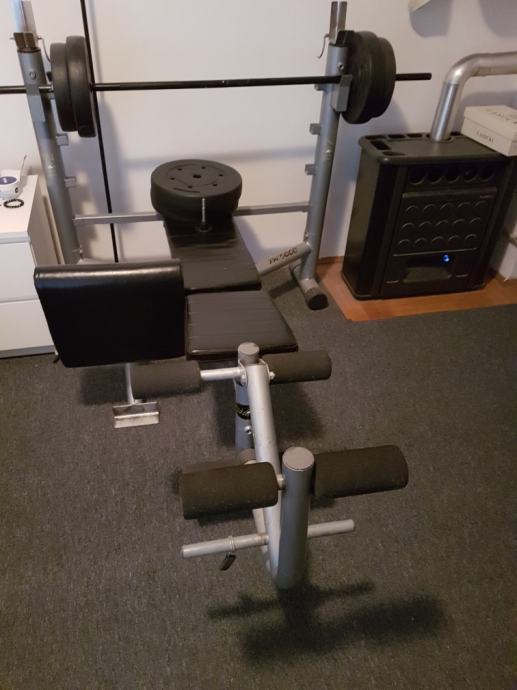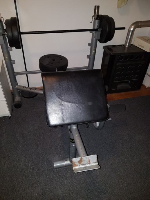Prodajem bench klupu,moze se podesavati da bude ravna ili kosa te da sluzi za cucnjeve...ima nastavke za noge te biceps...uz klupu idu sipka i utezi 45 kg (2×10,2×7.5,2×5). Presvlake i spuzve su cijele,ocuvane,tragovi koristenja se vide jedino na boji (oguljena na par mjesta).