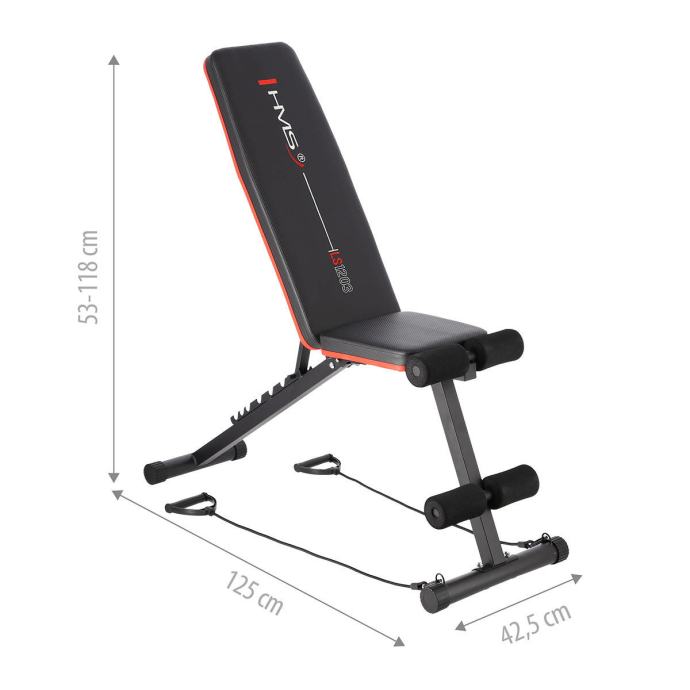 Podesiva bench klupa HMS LS1203 je višenamjenska samostojeća klupa izvrsna za kućne treninge. Podešavanje naslona u osam koraka, zaključavanje nogu i dodatne elastične gume s ručkama omogućuju korisniku izvođenje mnogih novih i naprednih vježbi s ciljem postizanja što učinkovitijeg treninga. Klupa je vrlo jednostavna za sastavljanje i rastavljanje što samu upotrebu čini vrlo jednostavnom.