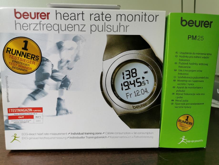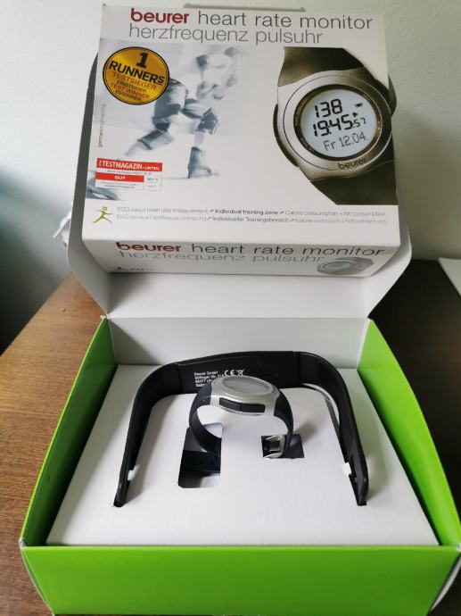 Novi, nekorišten sportski sat marke Beurer, model PM25 sa trakom za točnije mjerenje pulsa.