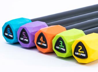 Ovisno o težini svaka šipka označena je drugom bojom: 2kg (žuta), 3kg (zelena), 4kg (crvena), 5kg (ljubičasta), 6kg (plava)