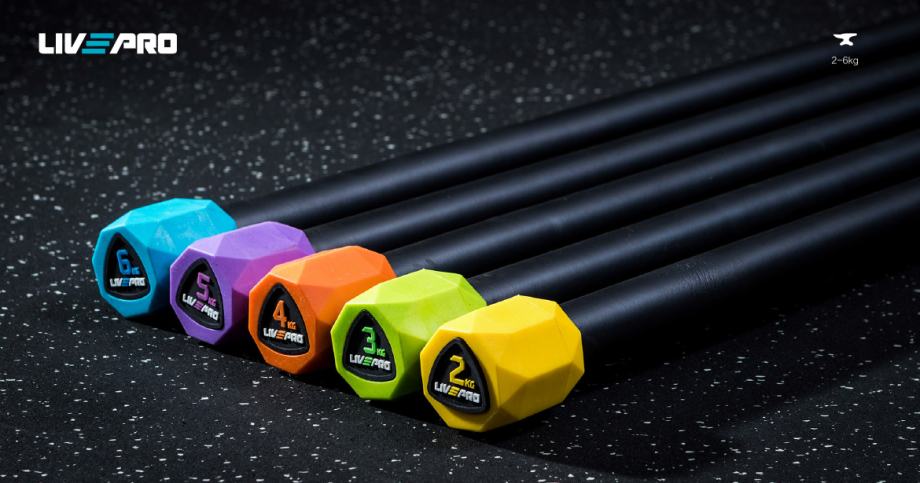 LivePro LP8145 Body Bar 2kg je otežana aerobik šipka za vježbanje dužine 120 cm. Šipka je izrađena visokokvalitetnog nehrđajućeg čelika, visoke žilavosti i čvrstoće što doprinosi kvaliteti proizvoda i osigurava visoku trajnost.. Čelična površina šipke omotana je visokokvalitetnom spužvom s udobnim hvatom. Spužva povećava trenje između ruke i šipke što je učinkovito protiv klizanja šipke iz ruke prilikom treninga.