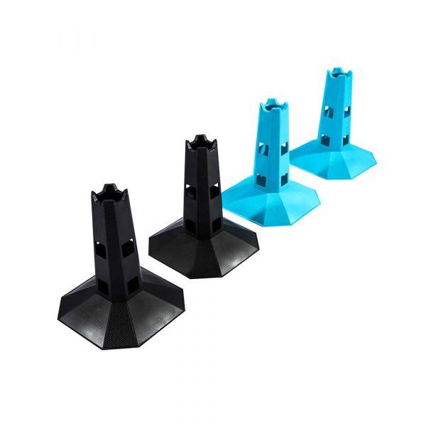 Agility Cones set čunjeva sastoji se od 4 čunja: 2 plava i 2 crna čunja. Na vrhu imaju četiri udubljenja za postavljanje vodoravnih prepreka, a u sredini rupu pogodnu za postavljanje okomitih štapova. Kvadratna baza održava ravnotežu dok oblik omogućuje jednostavno prikupljanje i pohranu.