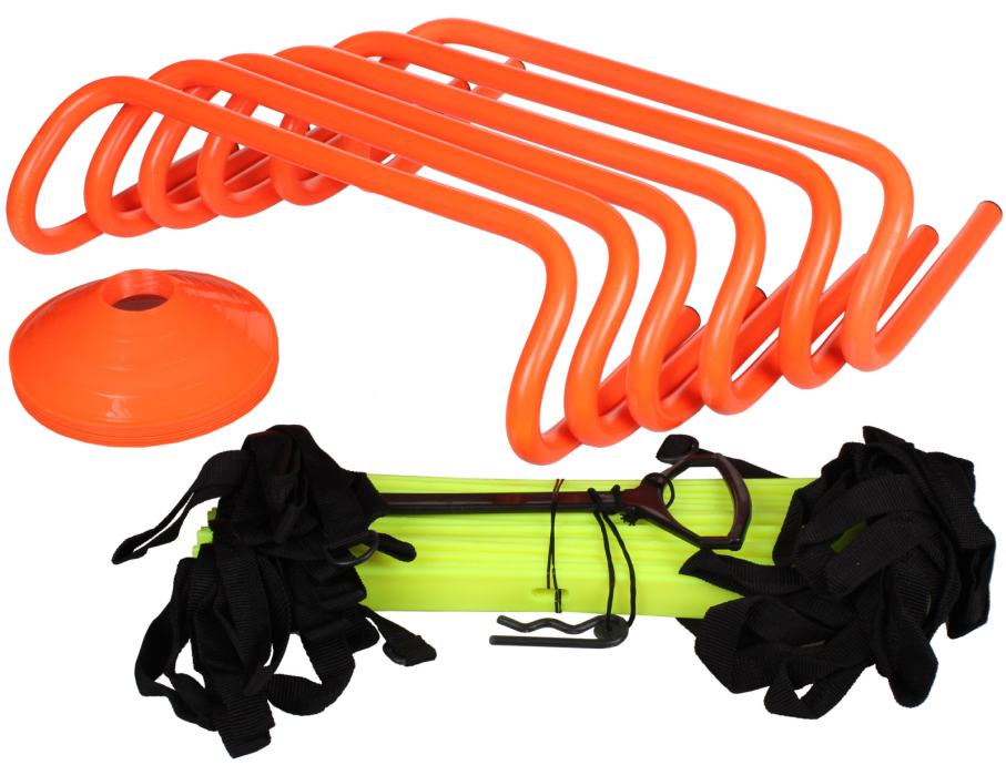 Agility setovi Merco Economy Kit vam pomaže poboljšati okretnost, brzinu, reakciju i jačinu za vrijeme treninga u bilo kojem sportu. Agility setovi Merco Economy Kit sadrži neophodnu opremu za učinkoviti trening, a to su: - 6x prepona visine 15cm - 12x čunjeva visine 5cm - 1x agility ljestve dužine 6m, sve spakirano u praktičnoj torbi.