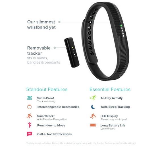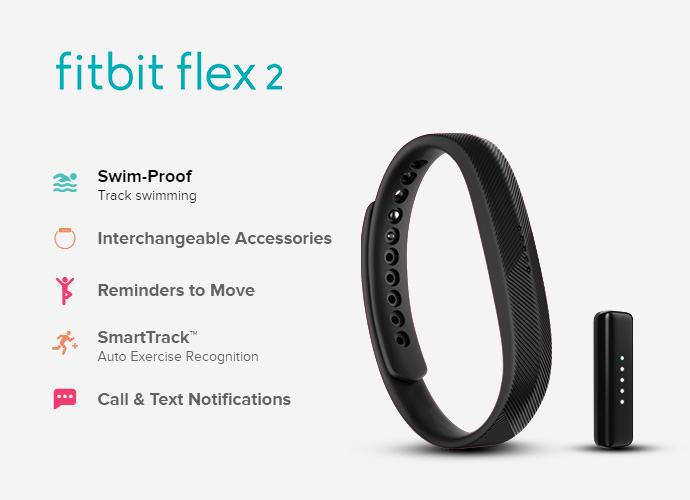 Vodootporna fitness narukvica koja je namjenjena i za plivanje. Flex 2 prati tjelesnu aktivnost- korake, plivanje, udaljenost, potrošene kalorije, aktivne minute, automatsko praćenje spavanja. Funkcija SmartTrack služi za prepoznavanje automatskog vježbanja. 5 LED dioda korisnika obavještavaju o statusu baterije, propuštenim pozivima, pristiglim porukama i mailovima te drugim važnim informacijama. Sve svoje aktivnosti možete popratiti u Fitbit aplikaciji na svojem pametnom telefonu.