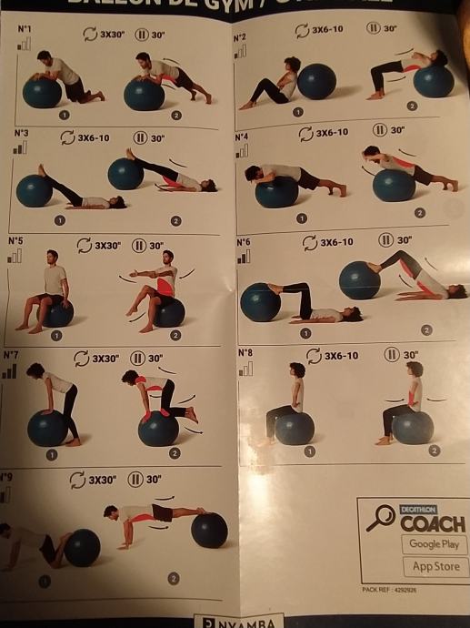 Prodajem fitnes loptu Nyamba, veličina 1, do 130 kg. Kupljena 25.8.2022. Nije korištena, samo je napumpana i stoji.