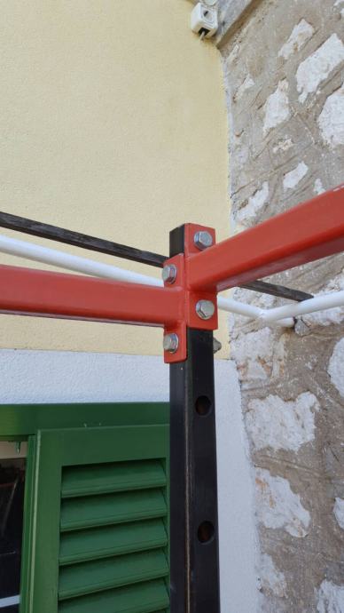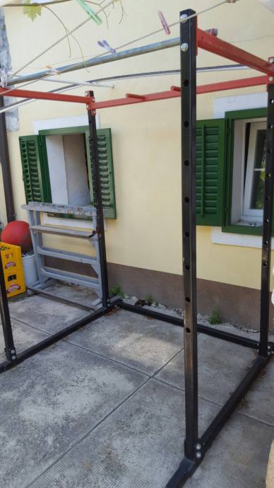 Kavez za vježbanje napravljen od brodskog čelika...kvaliteta izrade se vidi na slikama. Tko se razumije u sprave zna o kakvoj se kvaliteti radi...sprava zamišljena i namijenjena za zgibova čučnjeve i sve vrste potisaka uz pomoćnu klupu...