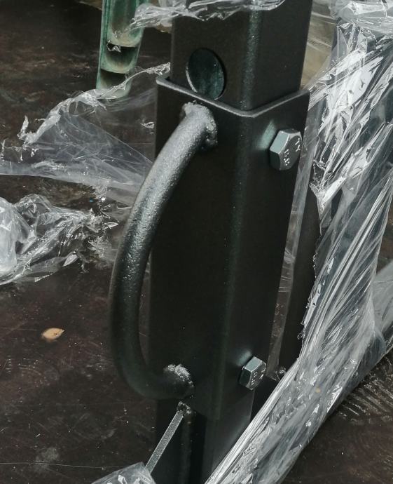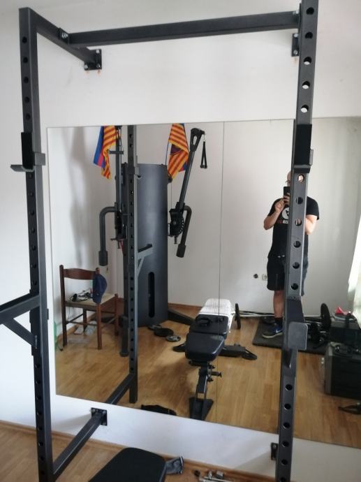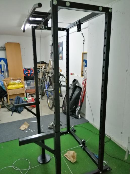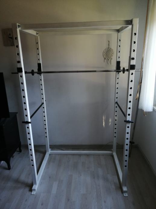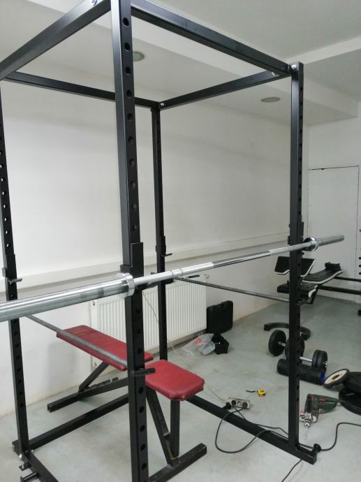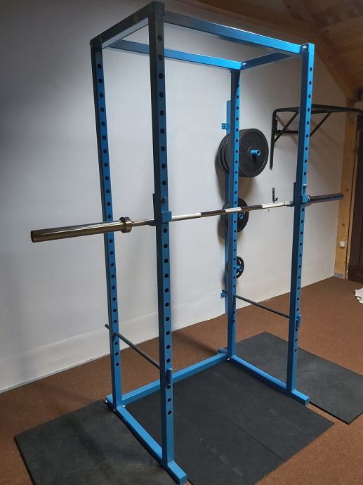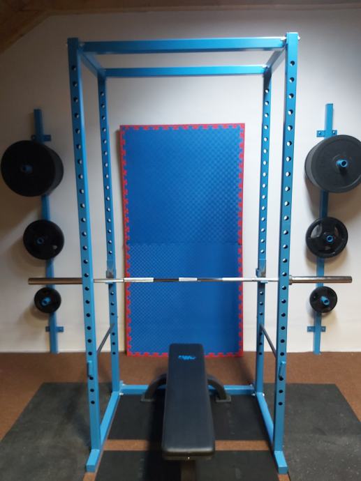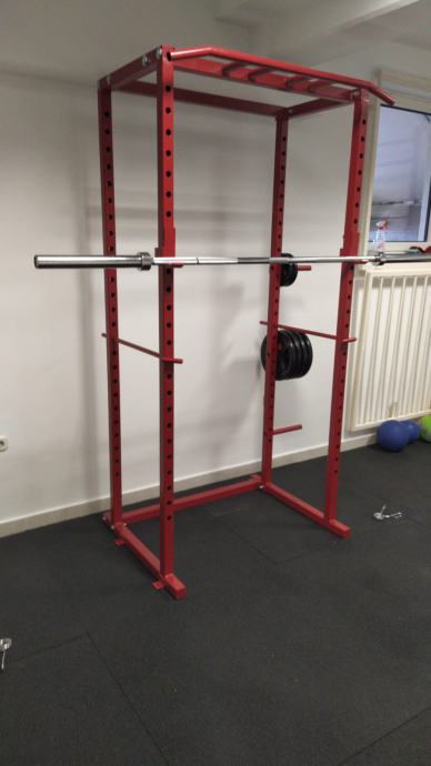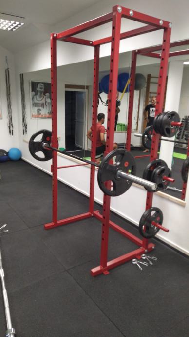 -2 poprečne šipke (saftey bars) za odlaganje šipke prilikom izvedbe drop setova i za vezanje elastičnih traka za vježbe eksplozivnosti