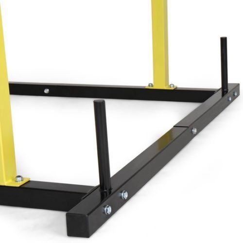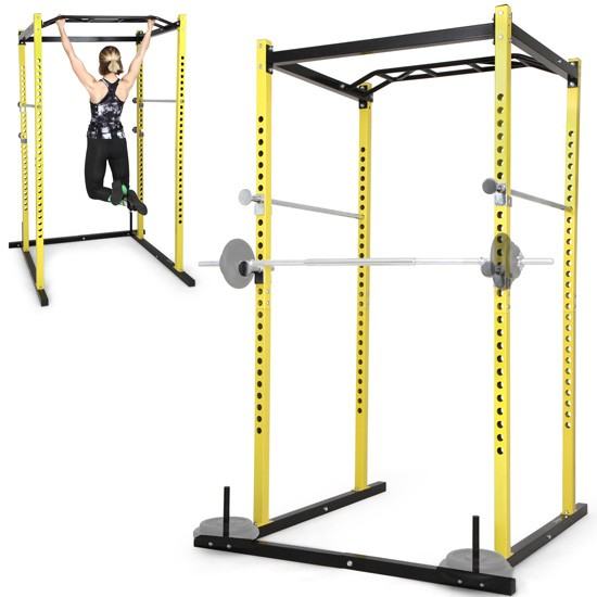 Ova fitness stanica je idealna baza za vaš dom ili fitness studio. Možete vježbati različite grupe mišića, isto tako i različite vježbe s utezima, čučnjevi, zgibovi, pull-up ili bench press. Uz sve to možete pohraniti šipku i diskove na ovom kavez jer postoje držači. Stabilna konstrukcija okvira od čelika pruža sigurnost. Ovaj dio opreme je pogodna za profesionalce, jer ima kapacitet oko 200 kg.