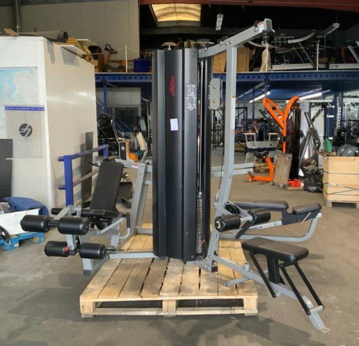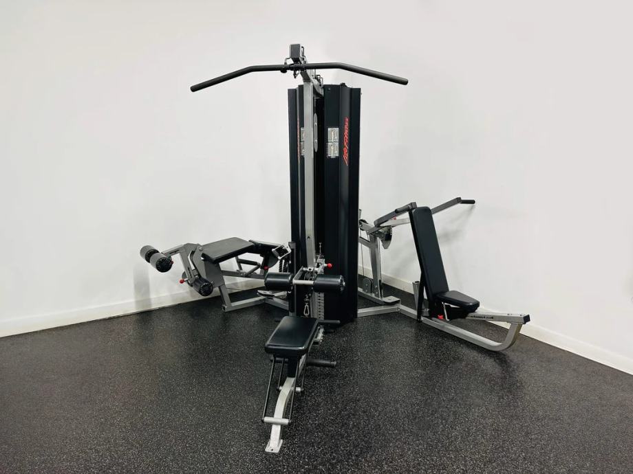 Prodaje se profesionalna 3-postajna multifunkcionalna sprava Life Fitness Fit 3. Sprava je odlično očuvana i tehnički besprijekorna, pogodna kako za fitness centre tako i za zahtjevne kućne korisnike. Opremljena je s tri odvojena stoga utega po 95 kg, što omogućava istovremeni trening više osoba te veliku raznolikost vježbi.