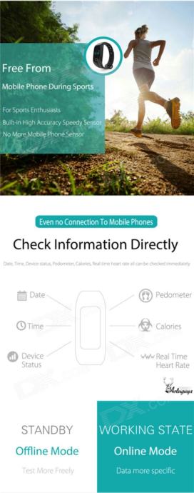 Sat - narukvica za fitness, za praćenje aktivnosti u u aktivnoj fazi vjezbanja kao i za vrijeme spavanja. Posebno pogodno za trčanje i druge aktivnosti na otvorenom. Brojač koraka, srcani puls i potrošnje kalorija.