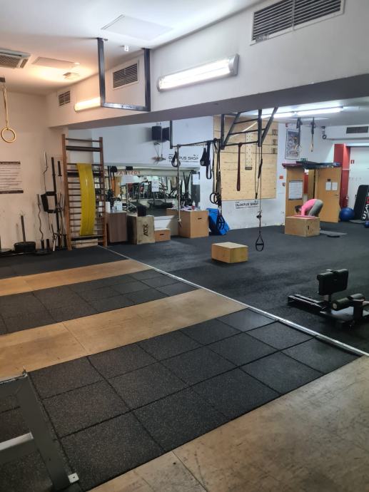 Pod: gumene ploče debljine 3 cm + upijajuća pjena debljine 4 cm.