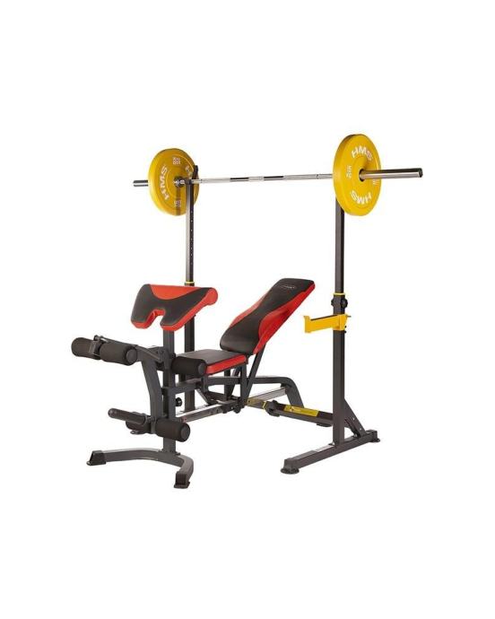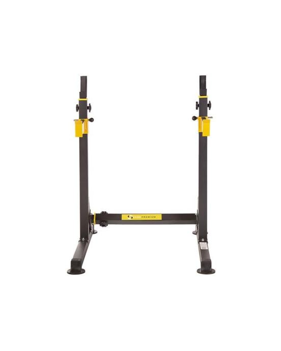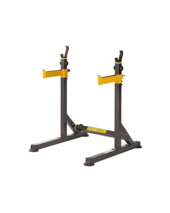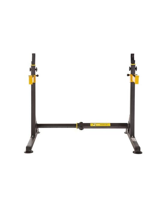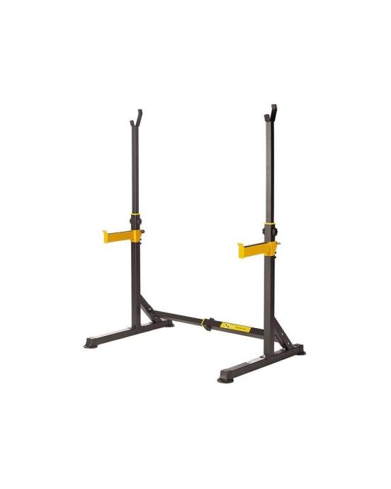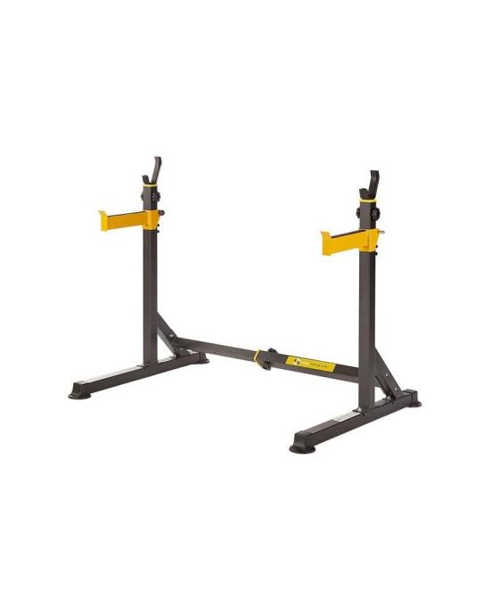 HMS STR18 podesivi stalak za šipku je čvrsti stalak za izvođenje čučnjeva, bench pressa (nakon dodavanja klupe), biceps pregiba, potisaka i mnogih drugih vježbi. Ovaj stalak može se podešavati po širini (81-129cm) i visini (105-169cm).