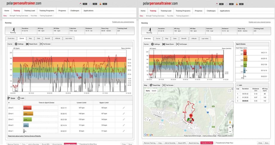 Sat se preko USB povezuje i spajate se na internet (na stranicu polarpersonaltrainer.com) gdje se uploadaju podaci iz sata i tamo možete pratiti sve vaše treninge, brzine, u kojim zonama opterećenja ste koliko vremena proveli, maksimalni , minimalni, prosječni broj otkucaja....