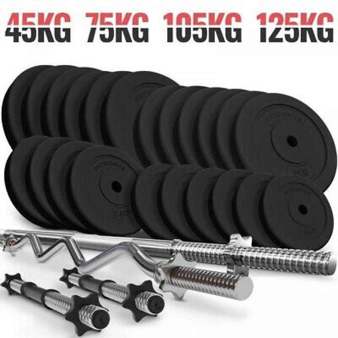 Set ploča ili utega sa šipkama za benč i bućicama od 75, 105 i 125kg