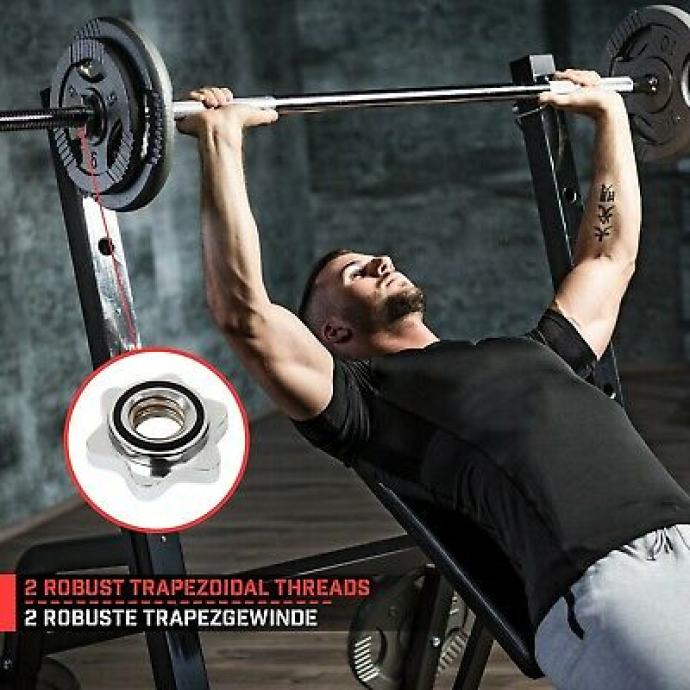 Šipka za benč 120cm i promjera 30mm u komadu podcinčana i nazubljena na mjestima za ruke protiv prolizavanja sa dvije matice i trapeznim navojem.