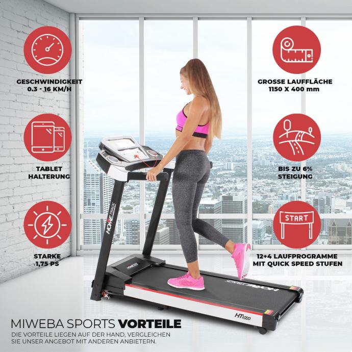 Varijante trčanja: besplatni trening do 16 km/h, 12 programa trčanja na izbor, dodatni program trčanja koji se može individualno postaviti, 4 brza programa