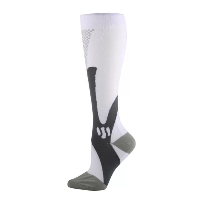Visoke čarape pri trčanju usko obuhvaćaju nogu i djeluju kompresijski. Dodatno aktiviraju mišiće, povećavaju protok krvi, sprečavaju grčeve… Klasični sportski dizajn i raspon veličina je prikladan kako za muškarce tako i za žene. Imaju oblikovan područje pete i prstiju, šavovi su ravni da ne nadražavaju kožu. To su visoko kvalitetne suvremeno oblikovane čarape koje nose i profesionalni sportaši.