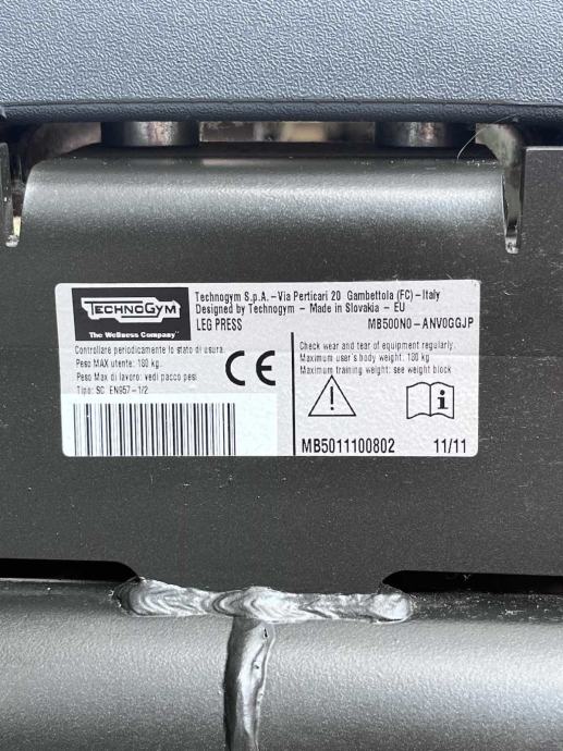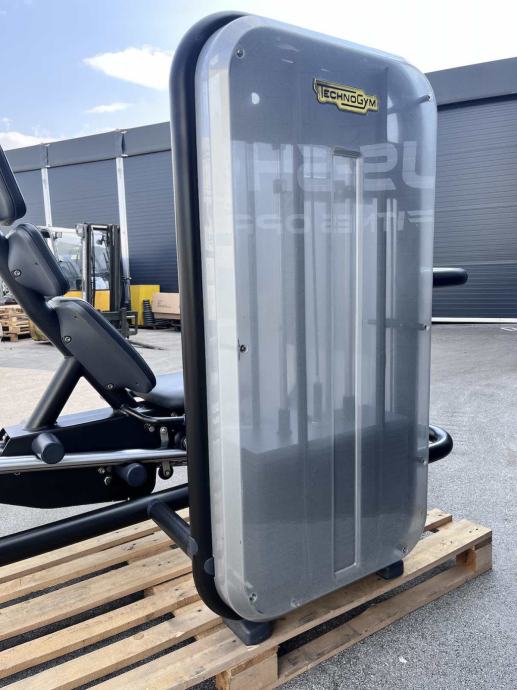 Technogym element line leg press. Uređaj je rabljen, dobro očuvan s vidljivim tragovima korištenja.
