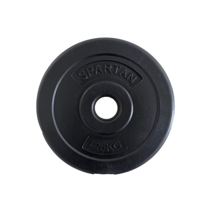 Spartan pločasti plastični disk uteg punjen cementom, promjera rupe 30mm i težine 1,25kg proizveden je prema najnovijim proizvodnim standardima i od visokokvalitetnih materijala koji osiguravaju dugovječnu uporabu. Uteg ima rupu promjera 30mm i idealan je za sve šipke promjera 30mm.