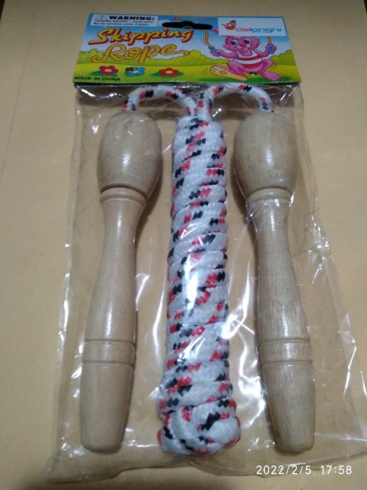 Vijača, s drvenim ručkama, dužine 215 cm, za vježbanje, original zapakirano