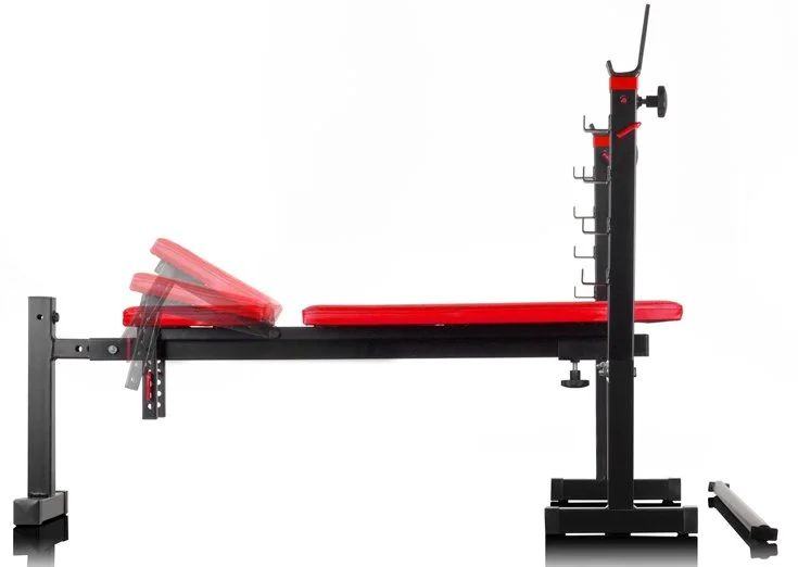 Podešavanje kuta naslona u 5 koraka (0°, 20°, 40°, 60°, 85°) i podešavanje kuta sjedala u 7 koraka omogućuje izvođenje mnogih vježba za različite mišićne skupine – prsa, leđa, ramena, ruke. Također, klupa se može produljiti sa 155 do 175 cm (u 4 razine). Stalak za šipku se može raširiti od 106 do 124 cm te povisiti od 91 do 163 cm. Posebni gumeni štitnici sprječavaju pomicanje opreme tijekom vježbanja i dodatno štite tlo od oštećenja. Profesionalna, dvostruko prošivena presvlaka debljine 3cm pružit će vam udobnost u vježbanju. Utičnica za dodatnu dodatnu opremu visine 50cm omogućuje vam spajanje dvostrane podesive klupe s drugim uređajima, npr. scott klupom, ekstenzijom za noge ili lat mašinom.