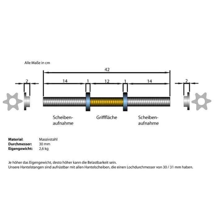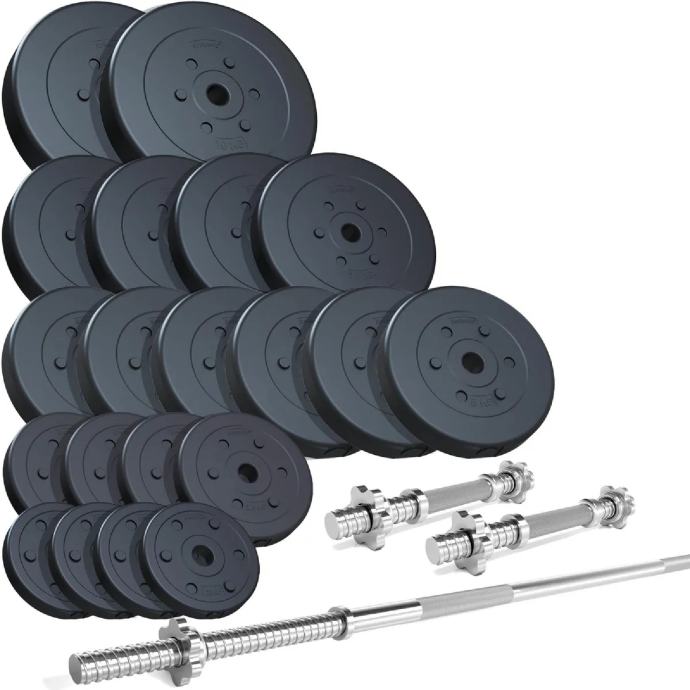 Šipka i dvije bućice ukupne mase 58 kg 105 €