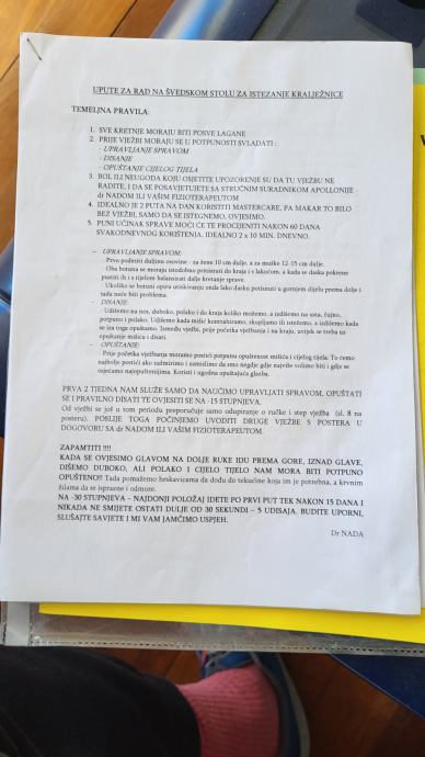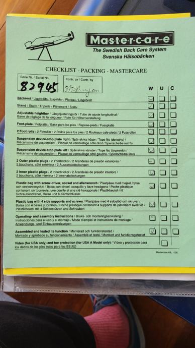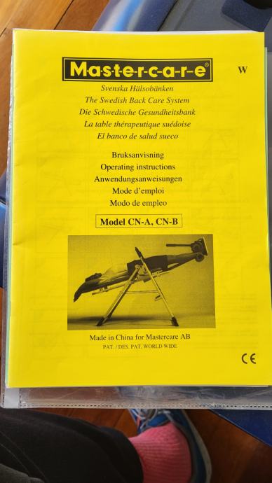Švedski stol Mastercare za istezanje kraljeznice kupljen u Splitu.Uz stol idu upute za rad na njemu na hrvatskom i engleskom jeziku i CD video Mastercare