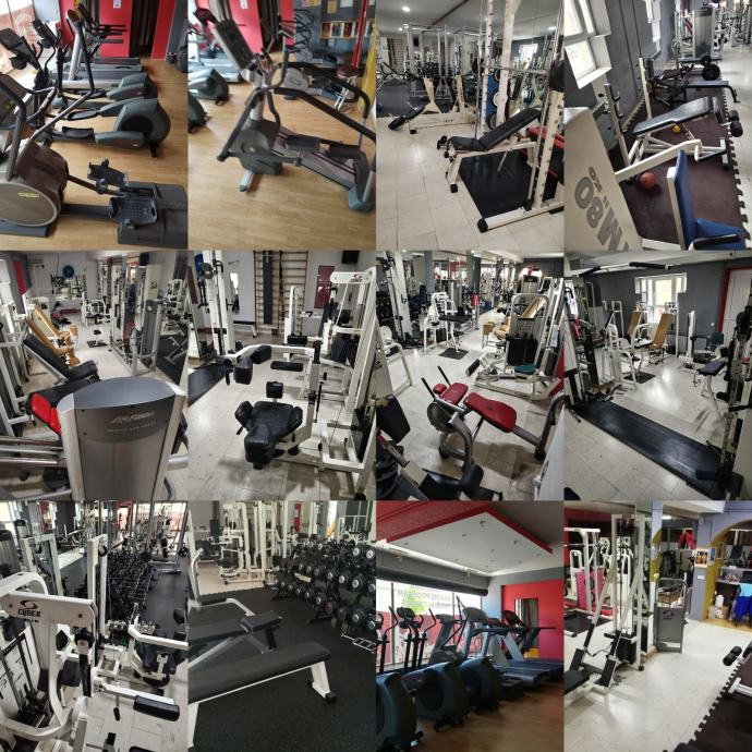 Na prodaju komplet fitness sprave i kardio program, bučice, šipke i dr.. proizvođača Cybex, Technogym, Lifefitness, GYM80.. za prostor od 250-300kvadrata.. Nije sve na slikama. Moguć dovoz Vinkovci, Vukovar, Đakovo, Županja, Slavonski brod