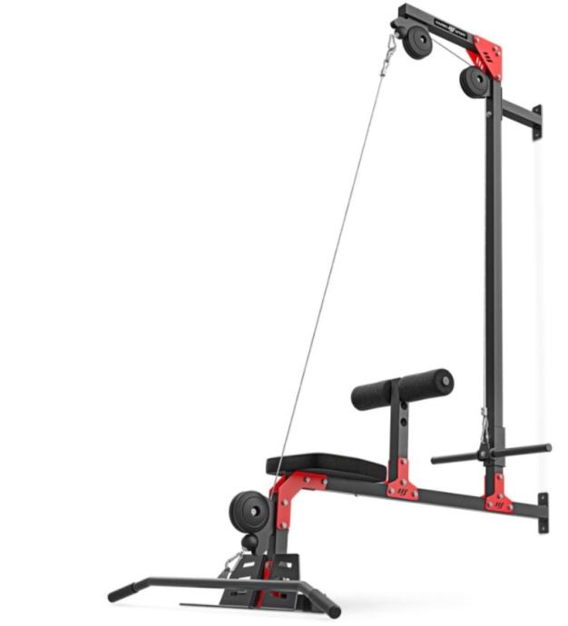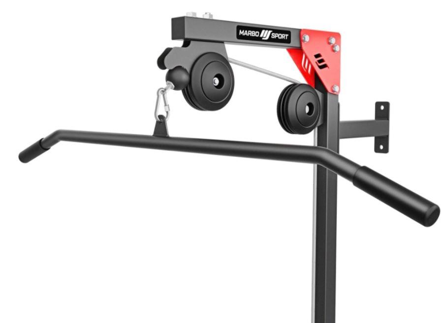 Najnovija fitness sprava pulley Marbo za vježbanje gornjeg dijela tijela. Na ovoj spravi je moguće vježbati mišiće gornjeg dijela tijela, posebno leđne i prsne mišiće a također i bicepse i tricepse. Donji kolotur je namijenjen vježbanju veslača (rukohvat za donji kolotur treba dokupiti). Za vježbe su vam potrebni utezi, koji idu na donji prečnu šipku, do 140 kg težine. Kolotur i fitness oprema Marbo su proizvedeni u Poljskoj sa maskimalnom pažnjom na oblikovanje i razvoj najmanjih detalja. Oprema je testirana u skladu sa zahtevanim važećim Europskim standardima i posjeduje sve certifikate Europskog kvaliteta. Oznaka Marbo Sport trguje sa visoko kvalitetnim fitness spravama, 100% proizvedenim u Poljskoj.Novi model 2.0!Veličina: 199 x 124 x 51Težina: 20 kgNosivost: 140 kg (70 + 70 kg)Promjer za utege: 25 mm