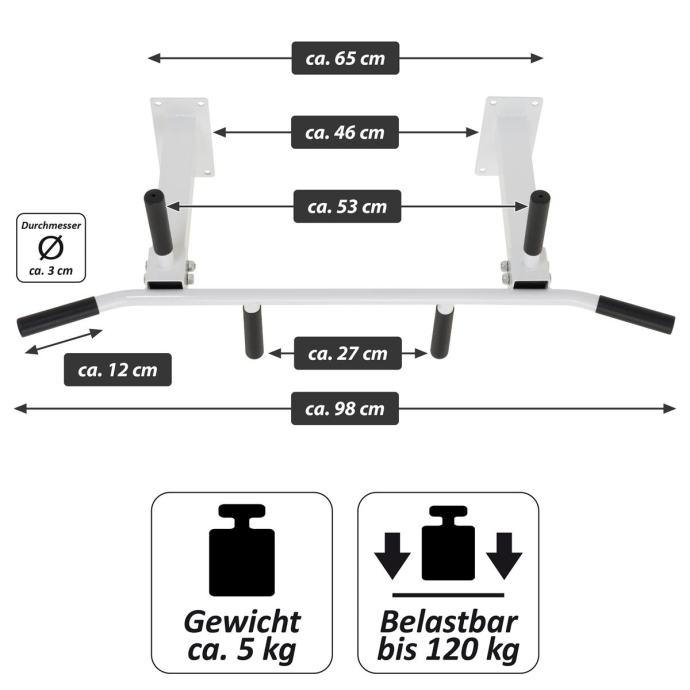 Šest različitih širina hvata omogućuje raznolik i sveobuhvatan trening leđa. Ovu šipku za zgibove možete uhvatiti u širokom, paralelnom ili uskom položaju.