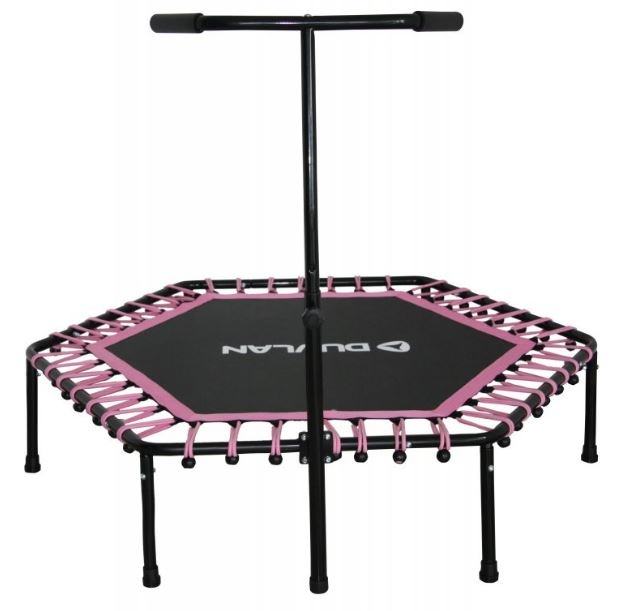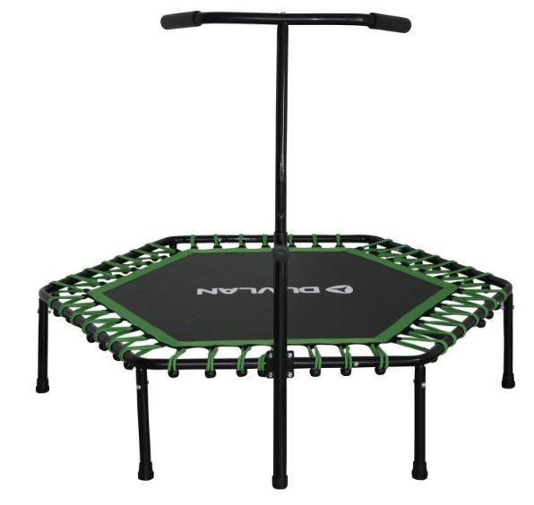 Novi Trampolin za fitness je napravljen od čelika i podnosi 100 kg. Fitness vježbanje na trampolinu postaje sve popularniji cardio trening. Također je odličan za opuštanje i zabavu. Fitness trampolin je napravljen od čvrste čelične konstrukcije i veoma elastične mreže. Sa fitness trampolinom vježbamo mišiće cijelog tijela uz minimalni napor zglobova.Dostupan u:zelenoj bojiroza bojiSvojstva:hitro se montira bez oruđapodesiva višina rukohvatabroj nogu: 6+1dozvoljena težina: 100 kgtežina: 8 kgpromjer: 127 cmčelična konstrukcija