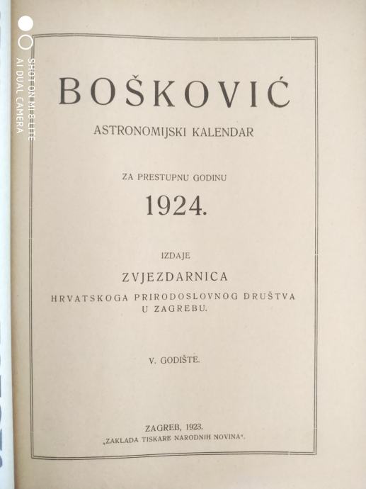 Bošković.Kalendar Hrv. Prirodoslovnog Društva.1924.god.