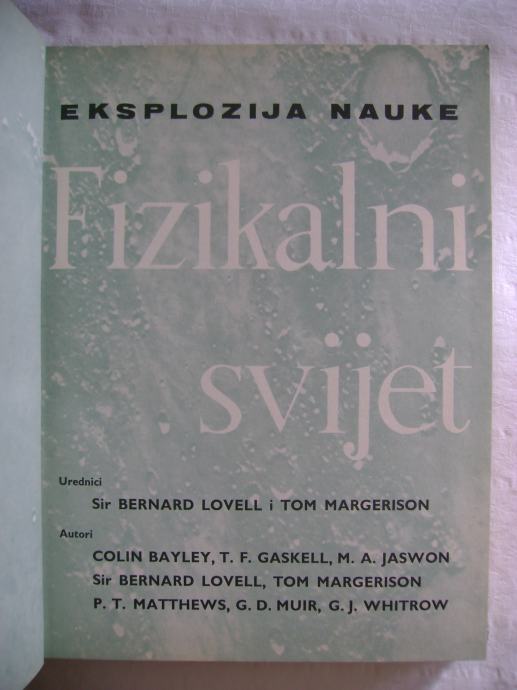 Grupa autora - Bayley, Gaskell, Jaswon itd. - Eksplozija nauke - Fizikalni svijet; urednici sir Bernard Lovell i Tom Margerison, izdavač Naprijed, Zagreb 1968. godine, 27 x 35 cm, tvrdi uvez i papirnati omot, 218 stranica, bogato ilustrirano.