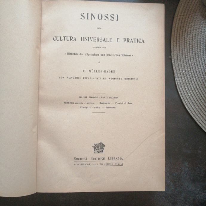 Prodajem sinopsis praktičnog znanja iz aritmetike, računovodstva, fizike, kemije i astronomije, na talijanskom jeziku, (prevedeno sa njemačkog), iz 1907. godine, izdavač Societa editrice libreria, Milano