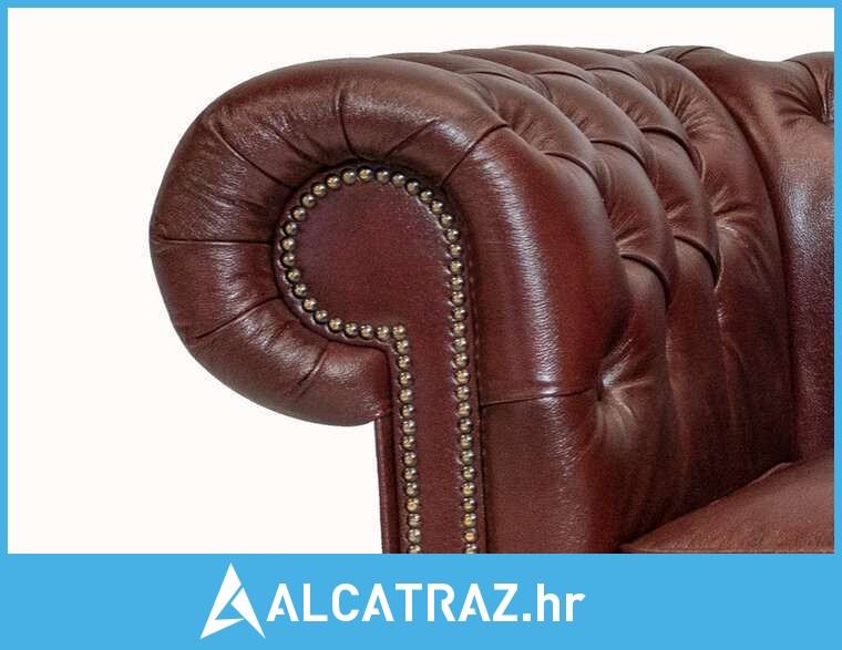 ***POSJETITE NAŠ SHOWROOM I UVJERITE SE U ENGLESKU KVALITETU*** Chesterfield Fotelja Class leather Cloudy RedMajstorova ruka u ovoj Chesterfield klasičnoj sofi od goveđe kože jasno je prepoznatljiva po lijepo izrađenim detaljima, poput zakovica i tapaciranih rukohvata i naslona.Jedan od najvažnijih materijala prilikom proizvodnje dobre Chesterfield sofe je koža. Chesterfield namještaj ručno je izrađen od visokokvalitetne poluanilinske kože, koja se zatim lakira.Okvir je izrađen od bukovine, koja je zalijepljena i vijčana. Duga tradicija zanatskog umijeća vidljiva je kroz udobnost i izgled klase.Model Chesterfield sofe 'Klasa' je model koji svi poznajemo kao pravi Chesterfield. Ovaj model Chesterfield sofe dostupan je samo u goveđoj koži i dostupan je kao Klasa i Prva Klasa.Certifikat autentičnosti i premijerno jamstvo pružaju se standardno pri kupnji svakog komada namještaja.Tehničke specifikacije