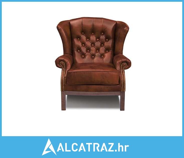 ***POSJETITE NAŠ SHOWROOM I UVJERITE SE U ENGLESKU KVALITETU*** Chesterfield Fotelja Durban Leather Cloudy CaramelMajstorova ruka u ovoj Chesterfield fotelji od goveđe kože Durban jasno je prepoznatljiva po lijepo izrađenim detaljima, poput zakovica i tapeciranih rukohvata i naslona.Jedan od najvažnijih materijala prilikom proizvodnje kvalitetne Chesterfield fotelje je koža. Chesterfield namještaj ručno je izrađen od visokokvalitetne poluanilinske kože, koja se zatim lakira.Okvir je izrađen od bukovine, koja je zalijepljena i vijčana. Duga tradicija zanatskog umijeća vidljiva je kroz udobnost i izgled Durban modela.Model Chesterfield fotelje 'Durban' jedan je od vodećih modela Chesterfielda. Ovaj Chesterfield model od kože također je dostupan u tkanini i vintage koži.Certifikat autentičnosti i premijerno jamstvo pružaju se standardno pri kupnji svakog komada namještaja.Tehnički podaci