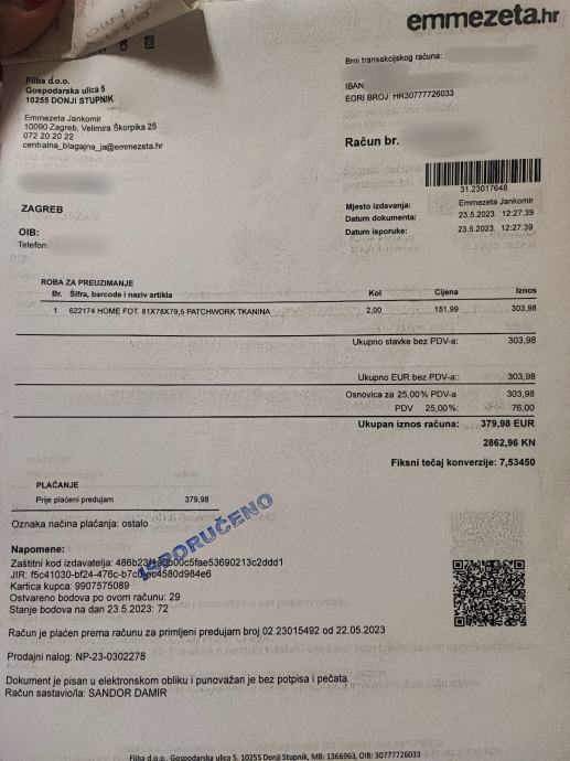 Mogućnost besplatne dostave na području Grada Zagreba i Zagrebačke županije.