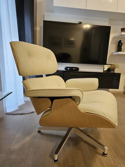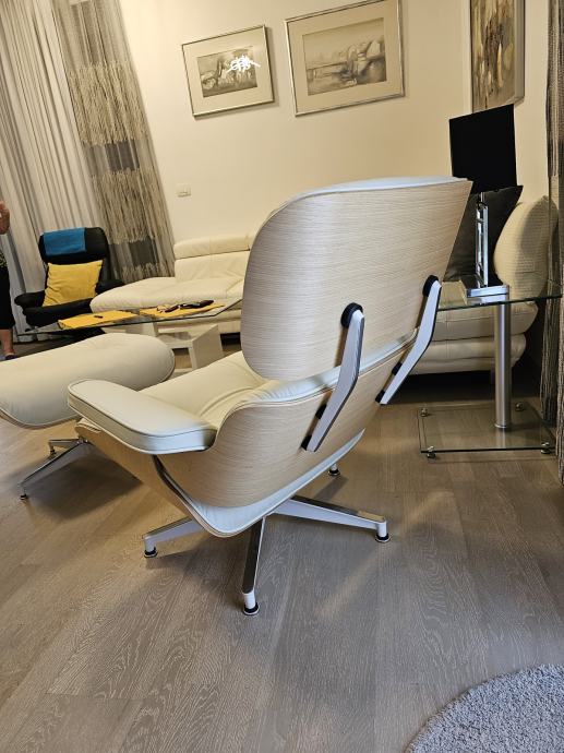 Lounge Chair – aluminij, furnir jasena, prirodna koža bijele boje