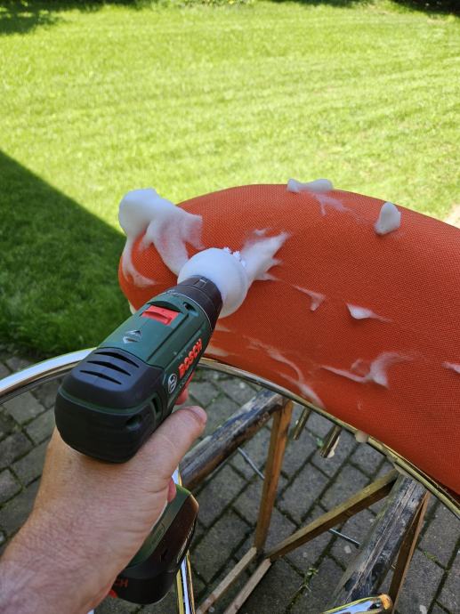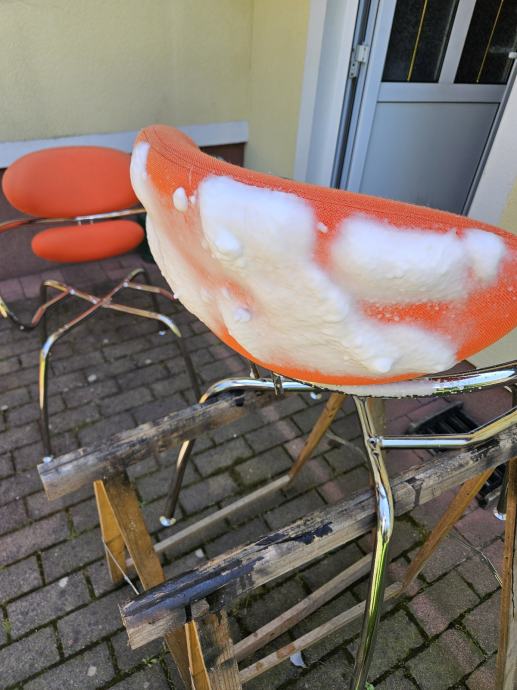 Tkanina naslona dubinski očišćena, tkanina sjedala zamijenjena novom, krom ispoliran.